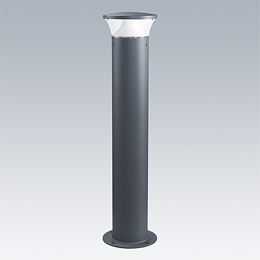 Borne de faible épaisseur, élégante et anti-vandalisme Radialement symétrique avec optique de haute performance. Pour Electronique, non gradable. Classe électrique IP66 l. Mât et socle : aluminium (EW AW 6060). Chapeau : aluminium Moulage sous pression (EN AC 44300). Diffuseur : Polycarbonate (PC) transparent anti-UV. Boîtier appareillage : Polycarbonate (PC). Couleur du chapeau et mât : gris anthracite 900 sablé thermopoudré (similaire à RAL7043). Luminaire Equipé d'un 50% circuit de réduction de puissance, qui entre en vigueur 3 heures avant et 5 heures après un minuit calculé. Il peut être désactivé à l'installation avec un interrupteur interne facilement accessible. pré-câblé et prêt à installer. Boîtier de connexion nécessaire, à commander séparément. Livré avec LED 4 000 K