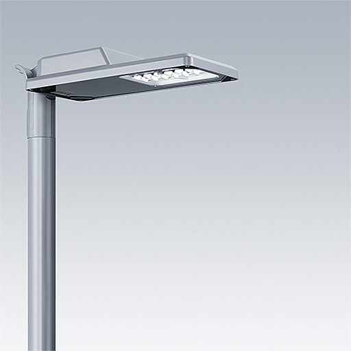 Lanterne routière à haute performance, discrète et flexible. Programmable Driver, réglé pour un rendement fixe, alimentant 24 LED en 350mA. Corps : taille extra petit, aluminium (EN AC-44300) Moulage sous pression, Gris pâle (150) - partiellement peint thermopoudré. Shaft: texturésans peinture. Fermeture : Extra blanc verre. Fixations : Acier inox avec traitement anti-galvanique. Optique route étroite, avec LED Indice min. de rendu des couleurs: 70, Température de couleur: 3000 Kelvin fournis. Classe électrique II, Résistance aux impacts : IK08, IP66, Ta max.: 35°C. Livré avec un adaptateur d’emmanchement Ø 60 mm qui convient pour montage top (inclinaison 0°/5°/10°) ou latéral (inclinaison -20°/-15°/-10°/-5°/0°). Pré-câblage avec un câble H07RN-F de 0,3 m, 1,5 mm².