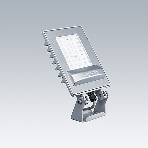 Projecteur LED compact, Small ultra-léger avec optique asymétrique. Classe électrique I, IP66, Résistance aux impacts : IK07. Corps : aluminium Moulage sous pression Gris pâle 150 sablé et texturé (similaire à RAL9006).. Fourche : aluminium. Fermeture : Polycarbonate (PC). Pré-câblé avec un câble lg. 60 cm. La fourche peut être fixée par un boulon M10 et/ou deux boulons M8, elle est orientable et réversible pour permettre différentes positions de fixation. Livré avec LED 4 000 K.