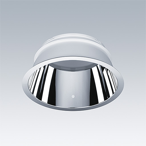 Insertion anti-éblouissement pour downlight de secours (E3/E3D) Cetus taille Large, pour un meilleur contrôle des éblouissements dans les applications de bureau (UGR19 conformément à EN12464). Matériau : Polycarbonate (PC) hautement réfléchissant. Finition : brillante.