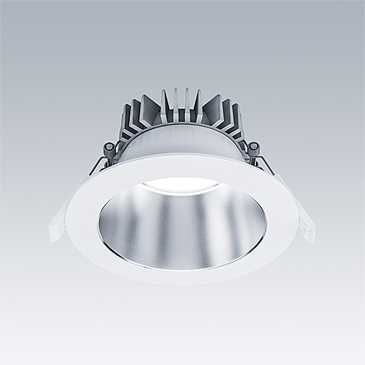Downlight LED encastré de faible hauteur. Convient pour les découpes de plafond Ø145-180 mm dans des rénovations ou des installations neuves, simples et rapides. Driver LED gradable DALI détachable avec fonction DC, réglable de 1 à 100 %, niveau de l’alimentation de sécurité préréglé sur 15 %, configurable avec NFC, compatible SwitchDIM. Câblage avec repiquage possible. Corps : Moulage sous pression pour gestion thermique. Diffuseur : Polycarbonate (PC), réflecteur lisse en finition Finition satinée avec faisceau large. Réflecteur : Polycarbonate (PC) de haute qualité et hautement réfléchissant. Classe électrique II, IP44_IP20. Clips à ressort pour des épaisseurs de plafond jusqu'à 35 mm.