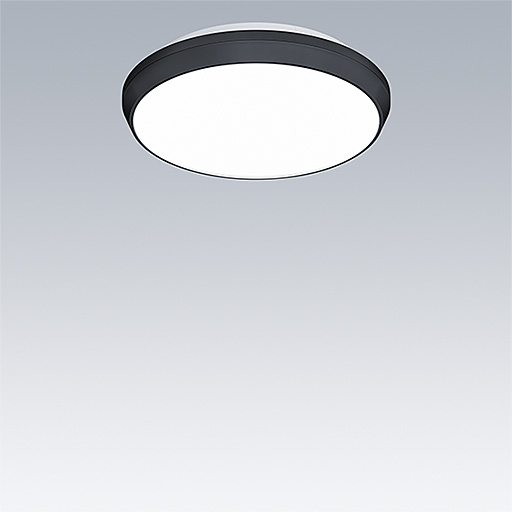 Luminaire circulaire décoratif avec corps Small. Composant indirect bas pour éclairage du mur et du plafond. Électronique, gradable DALI. Garniture esthétique du luminaire en Polycarbonate (PC) noir. Diffuseur : opale Polycarbonate (PC). Classe électrique II, IP54. Livré avec LED 4 000 K.
