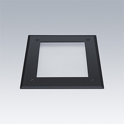 Axyl Opera, large size wide beam (frosted), a floor recessed, architectural LED luminaire for decorative facade lighting, with wide beam distribution. Class I electrical.. DALI-2 dimmable LED driver. , IP67, Impact strength: IK09. Housing: Die-cast aluminium, powder coated textured black (close to RAL9005). Working ambient temperature: -20°C to +45°C. Complete with 2700K LED..