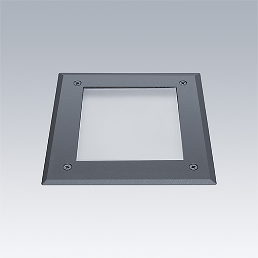 Axyl Opera, large size wide beam (frosted), a floor recessed, architectural LED luminaire for decorative facade lighting, with wide beam distribution. Class I electrical.. DALI-2 dimmable LED driver. , IP67, Impact strength: IK09. Housing: Die-cast aluminium, powder coated textured anthracite. Working ambient temperature: -20°C to +45°C. Complete with 2700K LED..