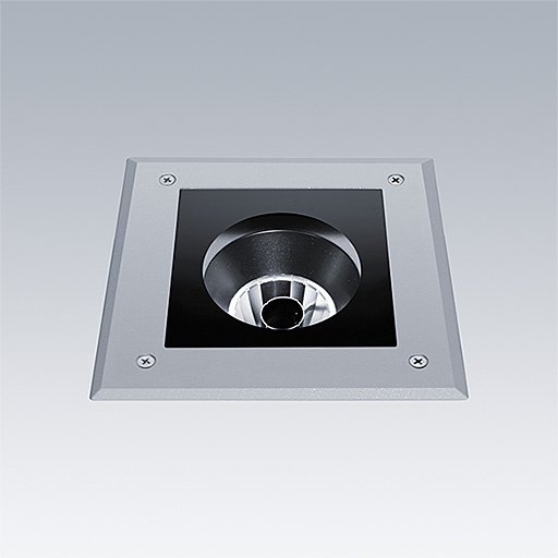 Axyl Opera, large size medium beam, a floor recessed, architectural LED luminaire for decorative facade lighting, with medium beam distribution. Class I electrical.. DALI-2 dimmable LED driver. , IP67, Impact strength: IK09. Housing: Die-cast aluminium, powder coated textured grey (RAL9006). Working ambient temperature: -20°C to +45°C. Complete with 3000K LED..