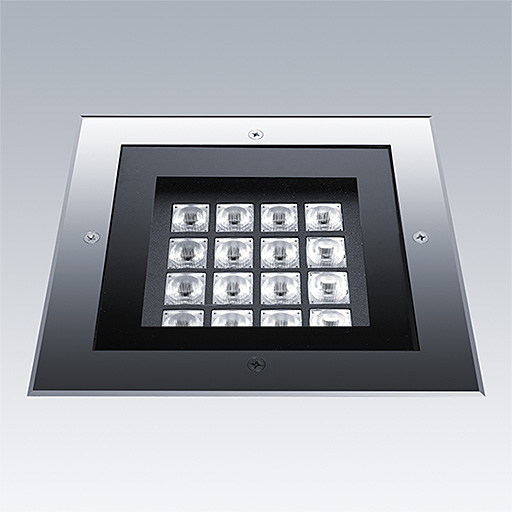 Axyl Opera, extra-large size asymmetric beam, a floor recessed, architectural LED luminaire for decorative facade lighting, with asymmetrical distribution. Class I electrical.. DALI-2 dimmable LED driver. , IP67, Impact strength: IK09. Housing: Die-cast aluminium, unpainted textured stainless steel. Working ambient temperature: -20°C to +45°C. Complete with 4000K LED..