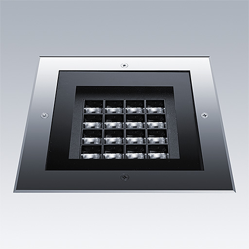 Axyl Opera, extra-large size narrow beam, a floor recessed, architectural LED luminaire for decorative facade lighting, with narrow beam distribution. Class I electrical.. DALI-2 dimmable LED driver. , IP67, Impact strength: IK09. Housing: Die-cast aluminium, unpainted textured stainless steel. Working ambient temperature: -20°C to +40°C. Complete with 3000K LED..