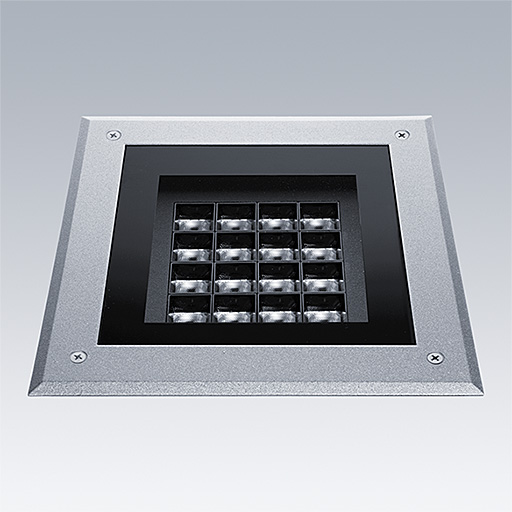 Axyl Opera, extra-large size narrow beam, a floor recessed, architectural LED luminaire for decorative facade lighting, with narrow beam distribution. Class I electrical.. DALI-2 dimmable LED driver. , IP67, Impact strength: IK09. Housing: Die-cast aluminium, powder coated textured grey (RAL9006). Working ambient temperature: -20°C to +45°C. Complete with 3000K LED..