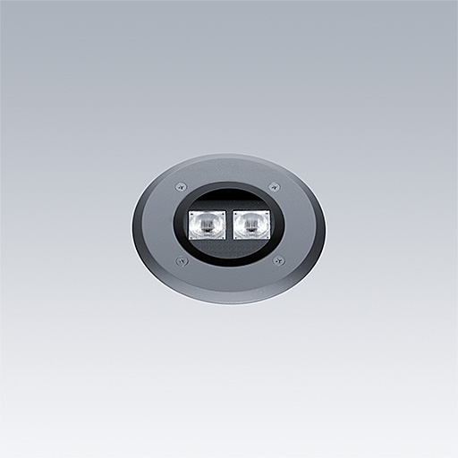 Cesar Opera, résistant au passage de piétons, moyen, faisceau asymétrique montage encastré dans le sol, luminaire architectural à LED pour l'éclairage décoratif des façades, avec et distribution asymétrique. gradable DALI-2 Déporté Driver. Classe électrique III, IP67, Résistance aux impacts : IK09. Boîtier : Moulage sous pression aluminium, thermopoudré anthracite. Température de service de Température ambiante : -20°C à +50°C. Livré avec LED 3 000 K.