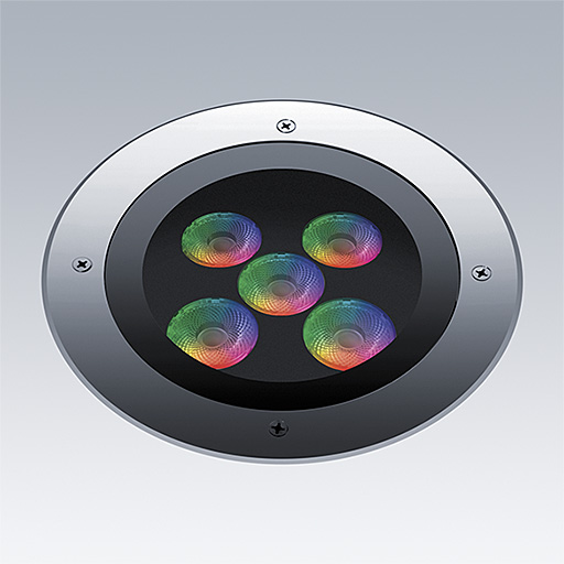 Cesar Opera, résistant au passage de piétons, RGBW montage encastré dans le sol, luminaire architectural à LED pour l'éclairage décoratif des façades, avec et distribution faisceau medium. Flux fixe Driver. Classe électrique III, IP67, Résistance aux impacts : IK09. Boîtier : Moulage sous pression aluminium, sans peinture. Température de service de Température ambiante : -20°C à +37°C. Livré avec LED rouge, vert, bleu et blanc.