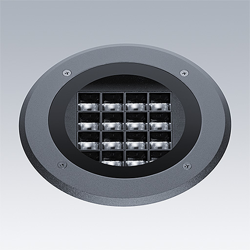 Cesar Opera, résistant au passage de piétons, très grand, faisceau étroit montage encastré dans le sol, luminaire architectural à LED pour l'éclairage décoratif des façades, avec et distribution faisceau intensif. gradable DALI-2 Driver. Classe électrique I, IP67, Résistance aux impacts : IK09. Boîtier : Moulage sous pression aluminium, thermopoudré anthracite. Température de service de Température ambiante : -20°C à +45°C. Livré avec LED 3 000 K.