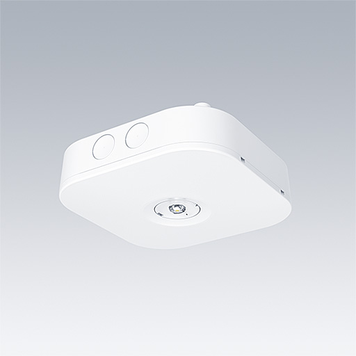 Luminaire de sécurité à LED pour un montage apparent au plafond. Optique orientable et pouvant être fixé par pas de 45°.