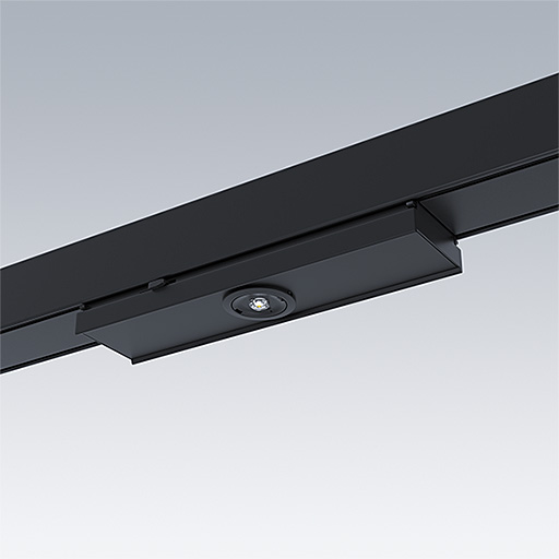 Luminaire de secours à LED pour un montage sans outil sur le système de rail Contus de Thorn. Optique orientable et pouvant être fixé par pas de 45°.